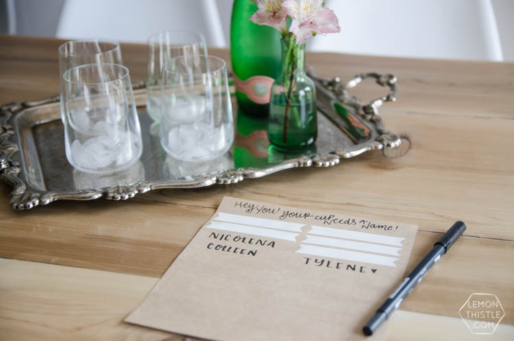 Printable Drink Tags! - A Beautiful Mess Supplies:-white card stock paper -printable drink tags (right click to download) -Canon PIXMA MG7720 photo printer-scissors-marker. Print as many of the drink tags as you think you will need based on your guest list (there are six tags per page).I like to use the