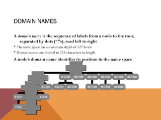 What is the maximum length of a DNS name - Stack Overflow a domain name represented as a sequence of labels, where each label consists of a length octet followed by that number of octets. The domain name terminates with the zero length octet for the null label of the root. Note that this field may be an odd number of octets; no padding is used. Which means that the following fields make up domain ... MCQ Questions for Class 10 Computer Applications Chapter 1 Internet ... A domain name maps to : (A) A URL (B) A website (C) An IP address (D) A11 of these Answer: (B) A website. Explanation: A domain name is a unique reference that identifies a website on the internet. A full domain name is a sequence of labels separated by dots. Question 4. WWW stands for : IH (A) World Wide Web (B) Word Wide Web (C) World Way Web ... › genedb › docIMGT/GENE-DB Provides the IMGT gene name (species and symbol in the IMGT gene nomenclature) and the IMGT definition (full name) of the gene. Chromosomal localization Provides the name of the locus (main locus or chromosomal orphon set), the chromosome number and the cytogenetic localization on the chromosome when known. Localizations in genome assemblies Domain name system - SlideShare Label • Each node in the tree has a label, which is a string with a maximum of 63 characters. • The root label is a null string (empty). 10. Domain Name • A full domain name is a sequence of labels separated by dots. • The domain names are always read from the node up to the root. • Finally, it end with null (root node) 11.