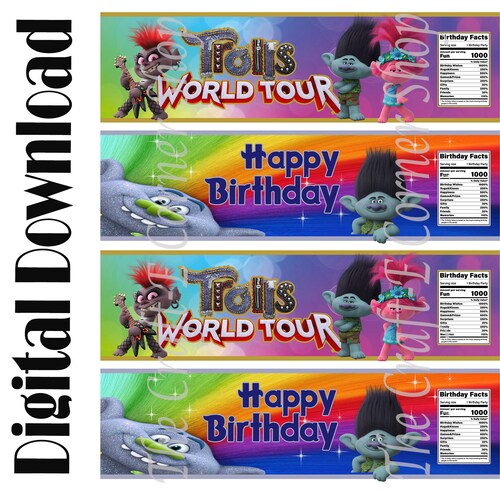 Printable Trolls 2 Water Bottle Labels - Pinterest Dec 26, 2021 - Decorate water bottles with these Trolls World Tour Water Labels. Fit most water bottles.Please note that THIS IS A DIGITAL FILE. You need to assemble it. NO Physical item is shipped. *** Please write child's name, age and email address on the Special instructions for seller box when placing your order******1 PDF file