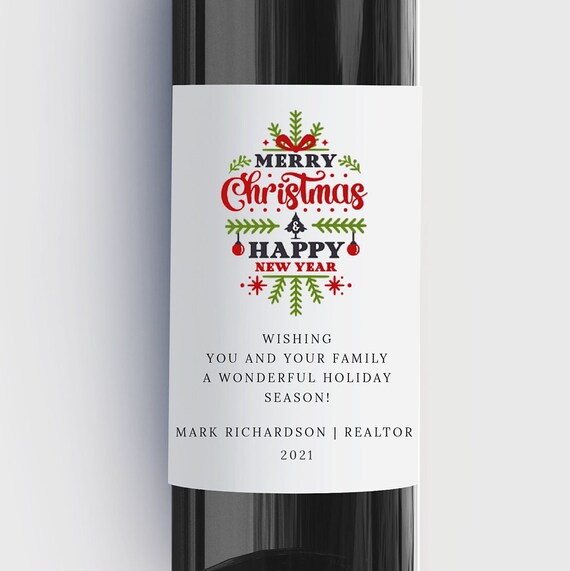 Christmas & Holiday Wine Labels - Custom Label Shop Choose from our beautiful selection of Christmas and Holiday wine labels for the perfect addition to your Holiday celebration. ... Take the hard work out of your Christmas shopping by giving a personalized Christmas wine gift with a beautiful custom label. All labels come with a self-adhesive backing, which means that applying it to your bottle ...